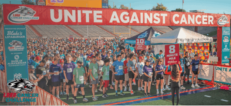 The Lobo Cancer Challenge is a cancer fundraising event hosted by The University of New Mexico’s Comprehensive Cancer Center in Albuquerque, New Mexico. What started in 2017 as a cycling event with 168 participants has grown into one of the region’s premier community fundraising experiences, drawing more than 1,900 participants across two cycling routes, a 5K Run/Walk, Stadium Stair Challenge, and kids Fun Run.