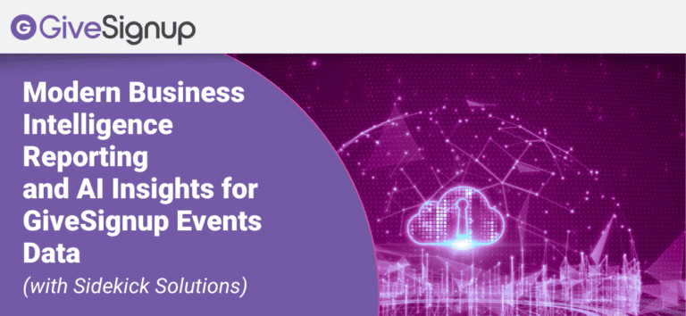 In this webinar, we will explore the benefits of cloud data warehousing strategies for Business Intelligence (BI) reporting and AI data analytics. We will demonstrate how these tools can leverage GiveSignup data to produce insights from race and event data, to create compelling visualizations and automated reporting. Additionally, we will demonstrate centralized dashboard reporting of GiveSignup and Salesforce CRM data, shown together in an integrated data model.